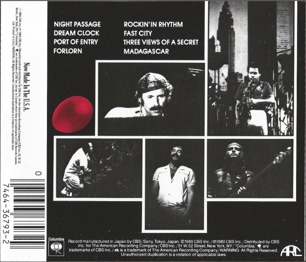 There are plenty of other things that would be nice to know about this album. Is “Port of Entry” live or were the crowd noises overdubbed? Where did some of the unique song titles like “Dream Clock” or “Three Views of a Secret” come from? Someone lacking in musical theory may want to know the time signatures used in a composition. Back in the heyday of jazz, an album would often be accompanied by a descriptive essay that would answer many of the listener’s curiousities. Sometimes, a band leader would write his or her own description of the music, or a music critic (such as Ralph J. Gleason or Nat Hentoff) would chime in with their own impressions. While this tradition may not have been as commonplace into the 80s, there’s no reason not to bring this practice back. With disciplined control over my writing utensil (or a very precise plotter to do the writing), I could squeeze my own essay into this space.