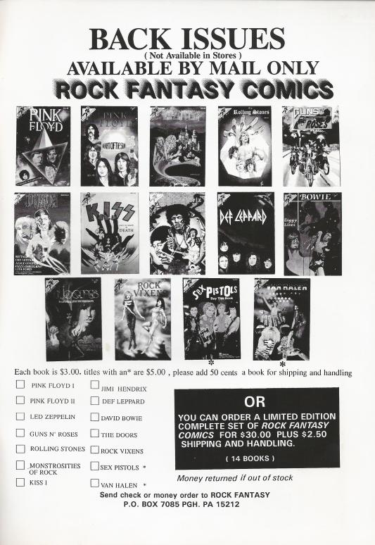 The inside of the back cover does advertise a whole other series of comics under the Rock Fantasy Comics umbrella. I may check out some of these down the road to see if they have more of what I’m looking for.