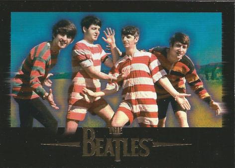 I can’t tell if they’re wearing pajamas, football (soccer) gear, or underpants in this next card, but here the mop-tops are clearly Monkee-ing around. While I know they weren’t influenced by the Monkees or anything as naive, but being decades too young to have been immersed in Beatlemania period makes me forget how playful the band behaved in the public eye. I got on board as a true admirer of the Beatles by finding a used copy of ‘The White Album’ at a Goodwill, an album where the band was far-removed musically and image-wise from this period. I was forgetting that by many metrics you could argue they were one of the first “boy bands” that caught on internationally. Light-mannered, goofy imagery scattered throughout this set is a good reminder of all the different phases the group went through.