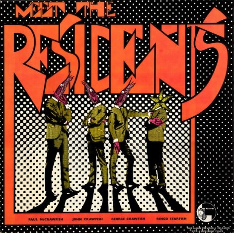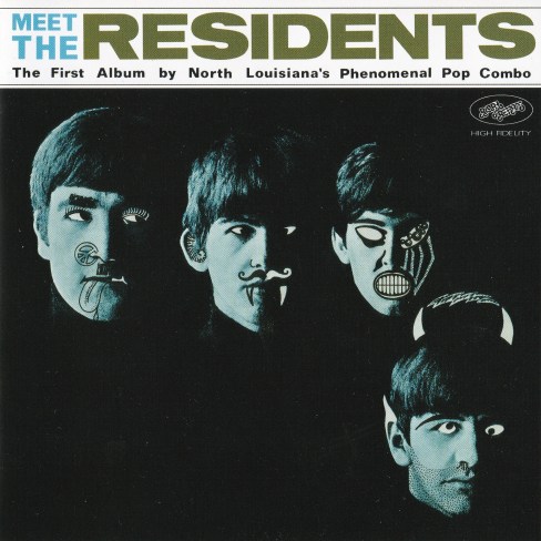 My 2011 edition’s liner notes describe what occurred with some of the artwork for The Residents’ debut. Originally, the band had created crawfish and starfish-inspired masks and gloves to go with matching suits, and had an extensive photo shoot where they recreated a variety of poses from early Beatles photo sessions. The film reel went missing along with their friend and mentor, The Mysterious N. Senada, who didn’t return it until years later. In haste, one of the band members took a marker and white-out to the back cover of Meet the Beatles to alter them to be fish.