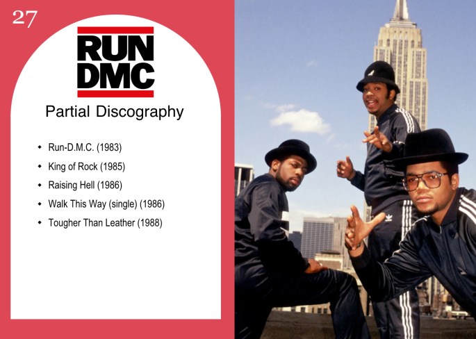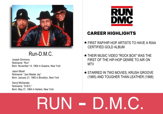 If we can finally get past who made the cut and who didn’t, I’ll get to the samples. I’ll keep it at one booklet per genre to demonstrate how they could have potentially looked. To start, here’s my stab at one for Run-DMC.