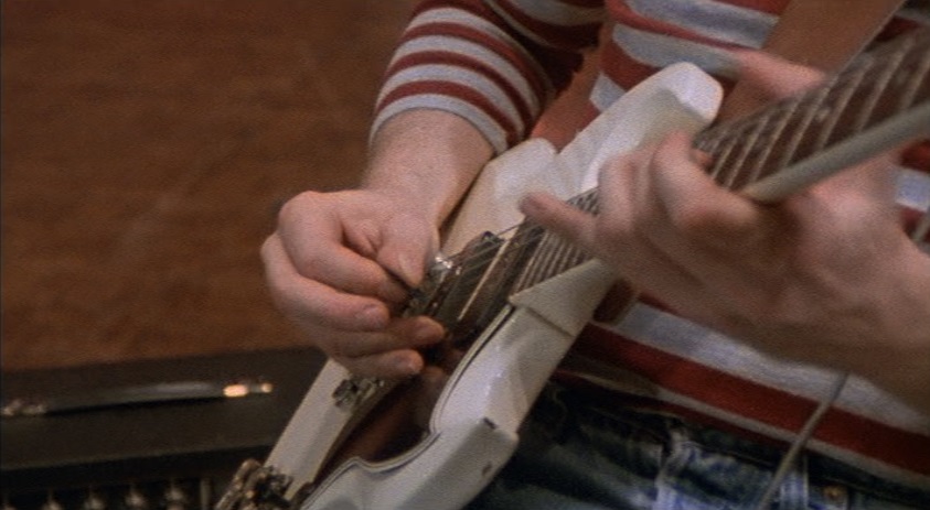 Later on, this character asks the band if he knows of this other band he’s thinking of. Four Jacks and a Jill is a clever name to drop for a made-up band, right up there with The Pecan Sandies as band names that sound like they were from the late 1950s or 1960s. It’s definitely not the name of another heavy metal band. Maybe it’s not too far off the group’s previous incarnation as The New Originals, but he’s is in way over his head in this discussion regardless. It’s like the stereotype of the clueless American asking a Canadian if they know Bob from Vancouver no matter where in the country the Canadian resides.
