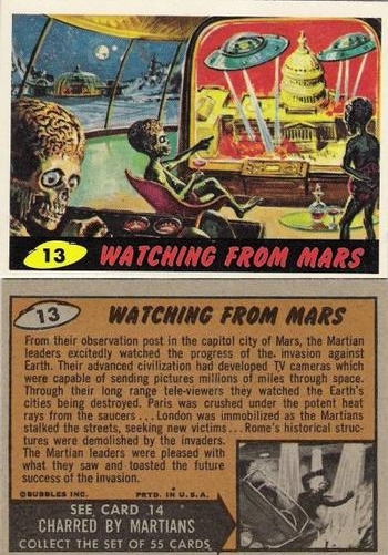 Most of the Mars Attacks originators are no longer with us, so it would be worthwhile branching out and investigating some of the extended family employed by Topps or other trading card manufacturers.