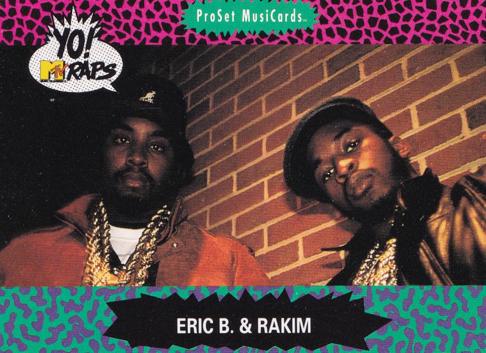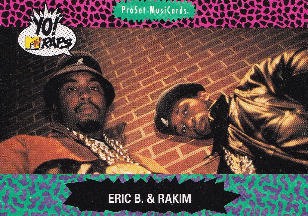 Pro Set seemed to have a rather limited range of photographs to choose from, which is impossible to hide in a 100-card set that features 32 different artists total (29 if you count the Chuck D, Flavor Flav, and Terminator X cards as Public Enemy ones). Take at look at these two cards of Eric B. & Rakim as an example, likely taken seconds apart.